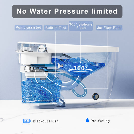 Smart Toilet with Built-In Tank, One-Piece Bidet toilet with Foot Flush, Auto Lid/Flush, Heated Seat, Warm Water&Dryer, Dual Flush & Dual Waterway, Foam Shield, Remote, LED Display&Night Light