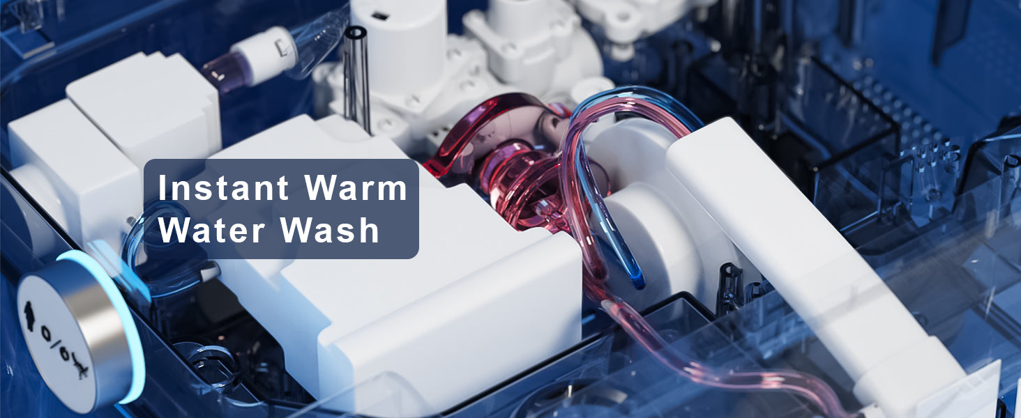 - Instant Warmth & Custom Comfort: Enjoy all-season comfort with a heated toilet seat with bidet(4 temp levels), on-demand warm water bidet (4 temp/pressure levels) and warm air dryer (4-speed settings). All temperature zones feature over-heat protection. The instant-heating tech delivers warm water within seconds—no preheating or wasteful tank storage. Tailor every detail via intuitive controls: from gentle morning rinses to powerful winter drying.
